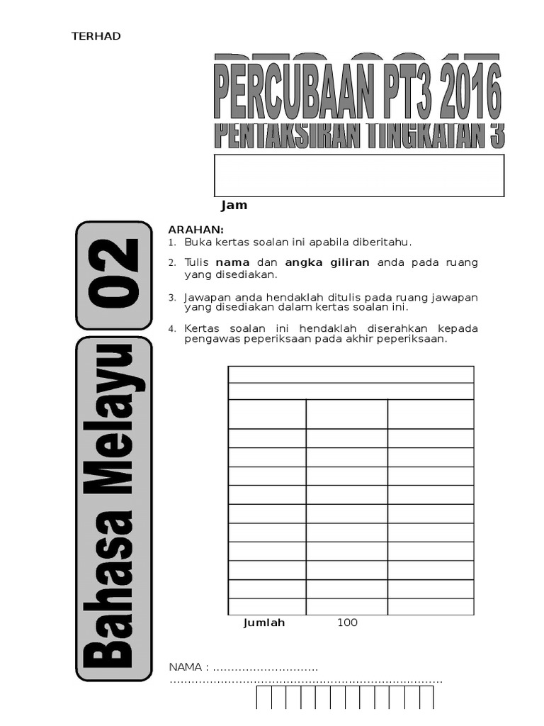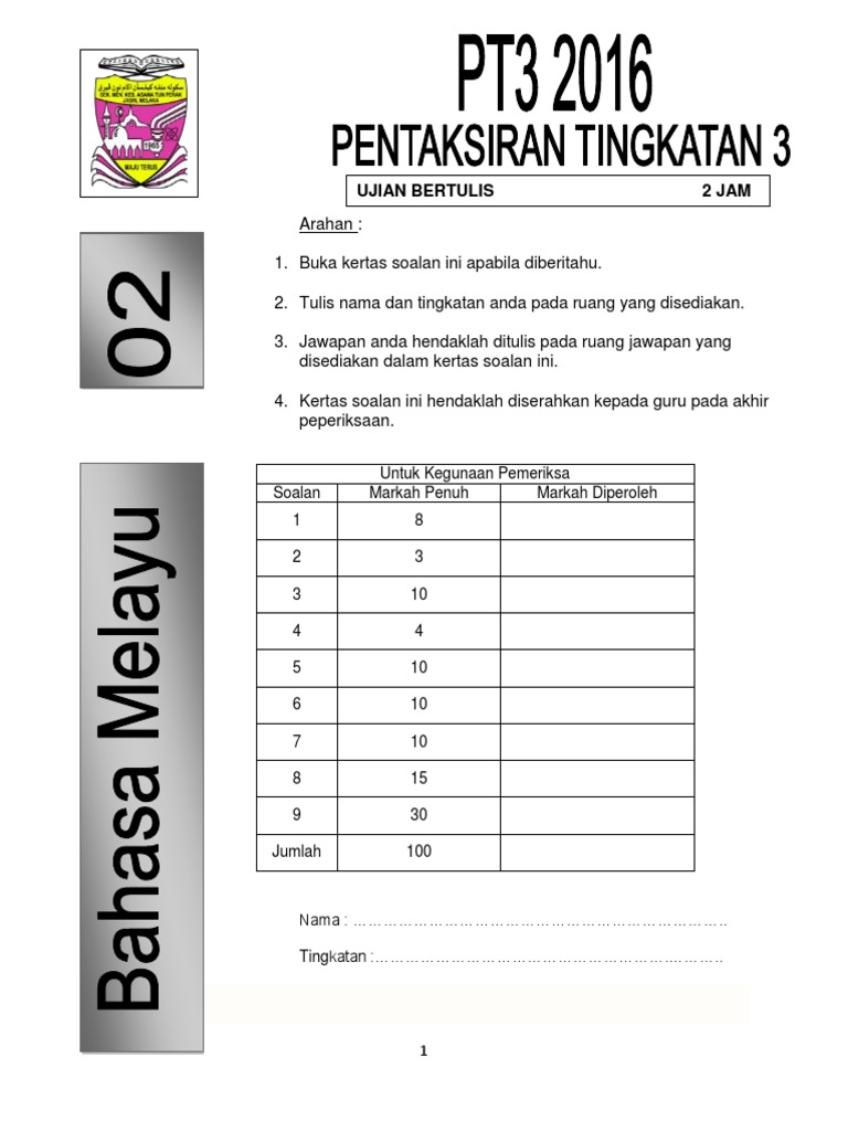 . Contoh Soalan Pt3 Bahasa Melayu 2022. BAHASA MELAYU 1 TINGKATAN 2 1 jam. Karangan bahasa melayu Stpm Contoh Laporan 2017.